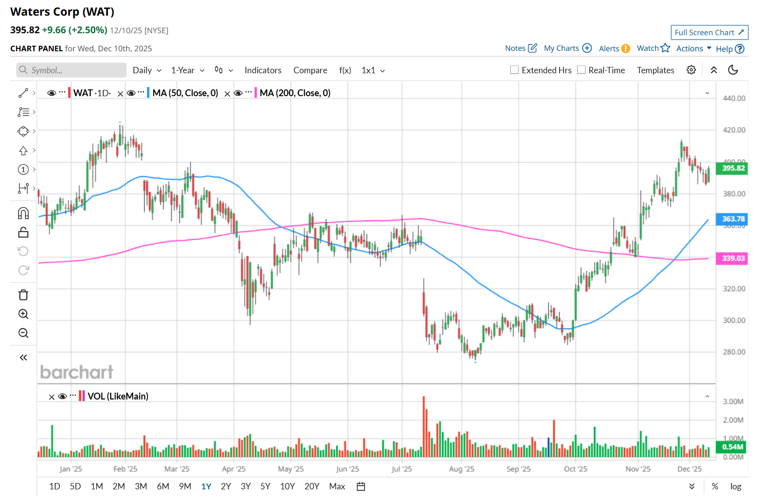 Milford, Massachusetts-based Waters Corporation (WAT) is a leader in analytical instruments, separations technologies, and scientific software. Valued at a market cap of $23.6 billion, the company’s products and solutions support research, quality testing, and regulatory compliance across pharmaceutical, life sciences, materials, food safety, environmental, and industrial laboratories.