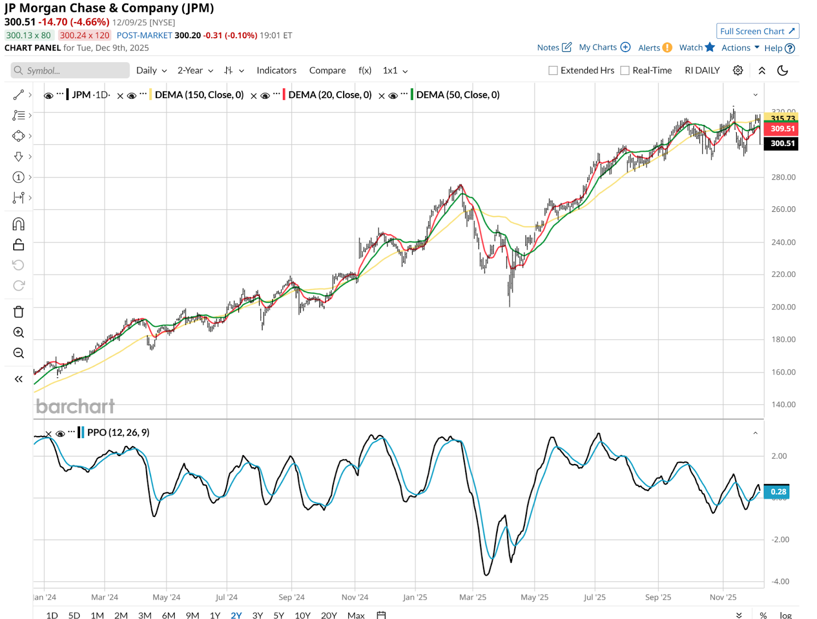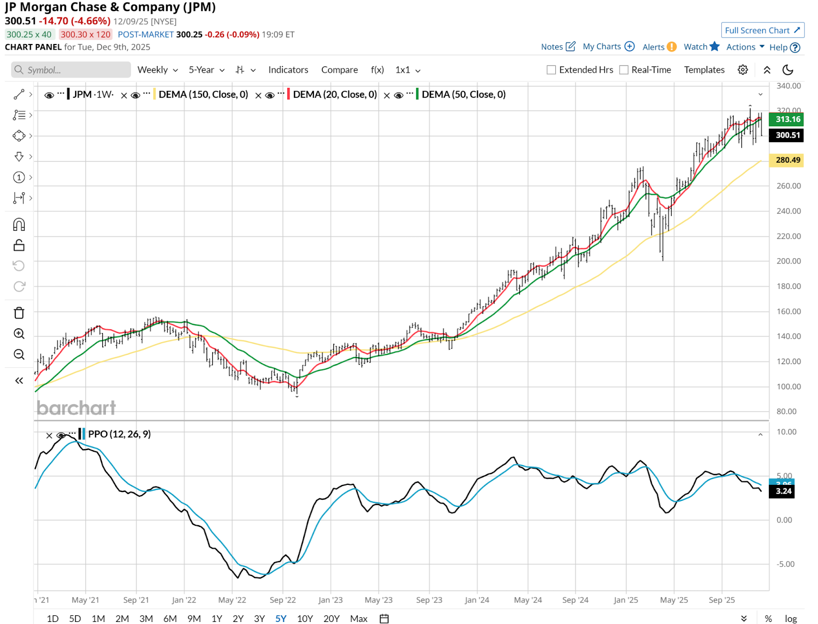 Still, every stock picture has two sides. And so to state the bull chart case, see the PPO from the summer of 2024 in that same weekly view. It sure looks a lot like the current pattern. What happened to JPM stock during that time? A more than 10% rally ensued.