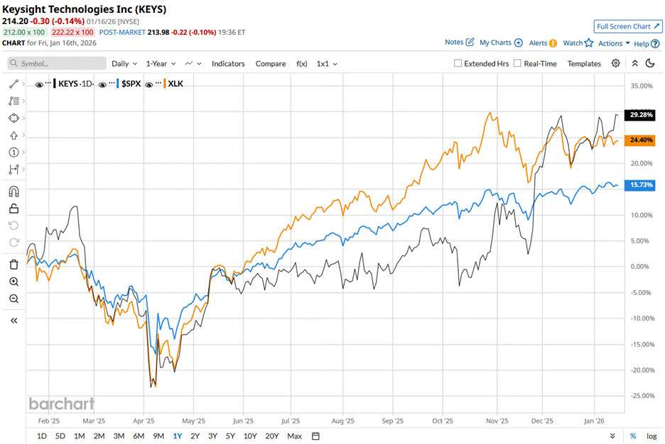 KEYS stock has surged 29.8% over the past 52 weeks, outperforming the S&P 500 Index’s ($SPX) 16.9% rise and the State Street Technology Select Sector SPDR ETF’s (XLK) 26.4% return during the same time frame.