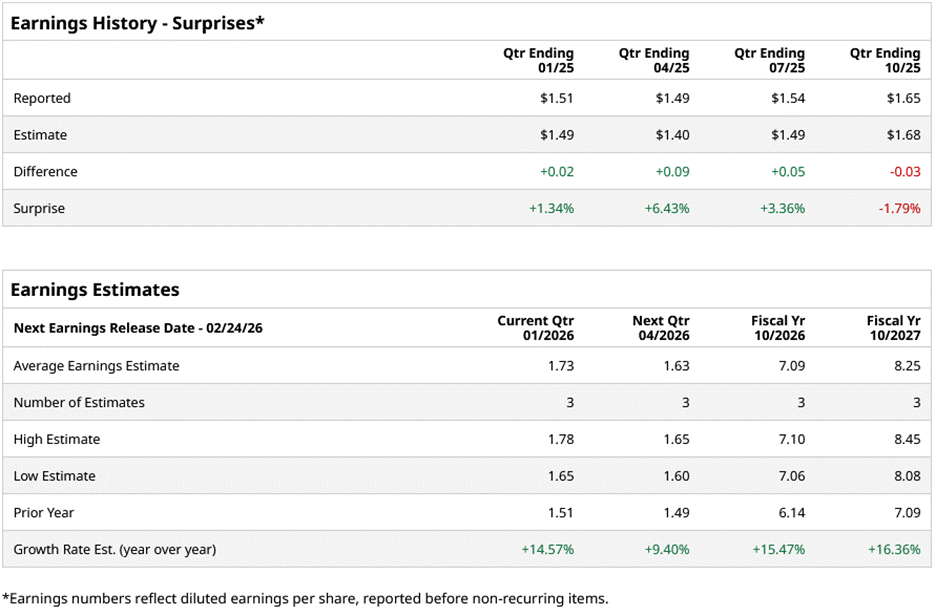 For the current year, analysts project the company’s EPS to be $7.09, up 15.5% from $6.14 in fiscal 2025. Moreover, its EPS is expected to rise by roughly 16.4% year over year (YoY) to $8.25 in fiscal 2027.