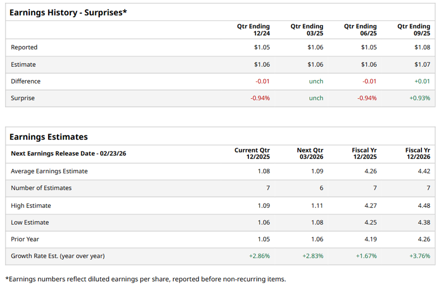 Realty Income Corporation (O), headquartered in San Diego, California, is real estate partner to the world's leading companies. With a market cap of $56.5 billion, the company owns and manages a portfolio of commercial properties located across the U.S. Realty Income focuses on acquiring single-tenant retail locations, leased to regional and national chains, and under long-term net lease agreements. The REIT giant is expected to announce its fiscal fourth-quarter earnings for 2025 in the near term.