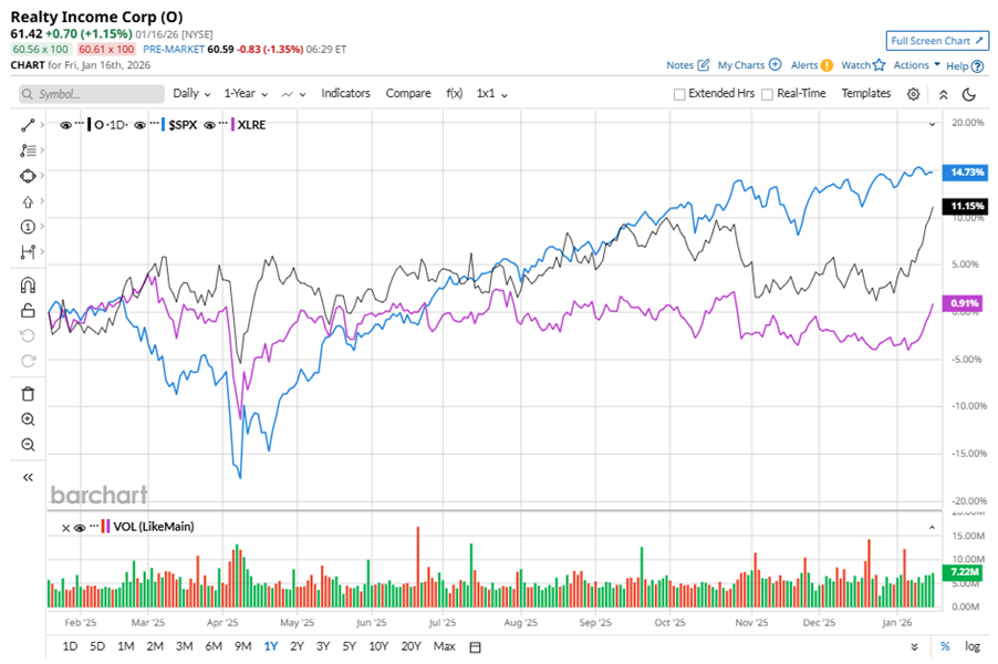 O stock has underperformed the S&P 500 Index’s ($SPX) 16.9% gains over the past 52 weeks, with shares up 12.5% during this period. However, it outperformed the Real Estate Select Sector SPDR Fund’s (XLRE) 2.7% gains over the same time frame.