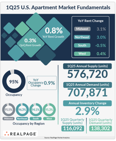 Apartment demand in 1st quarter 2025 was the highest 1st quarter figure in RealPage's 32-year data set.