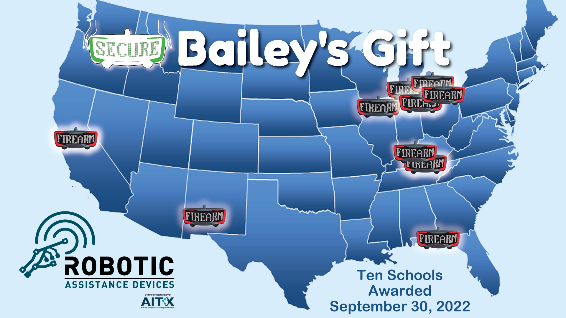 “What we’re doing through this campaign will help protect vulnerable schools and help save lives. It’s unfortunate that this is a reality for us as parents when it comes to our children’s education, but my hope is that by providing this technology we can help start a much-needed conversation regarding school security,” said Steve Reinharz, CEO of AITX and RAD. “The team is happy to know that the initial round of Bailey’s Gift ROSAs are currently being deployed. We plan to provide additional details and announcements regarding the Avondale High School ROSA in addition to other awarded schools as ROSAs are shipped and activated at those sites,” Reinharz concluded.