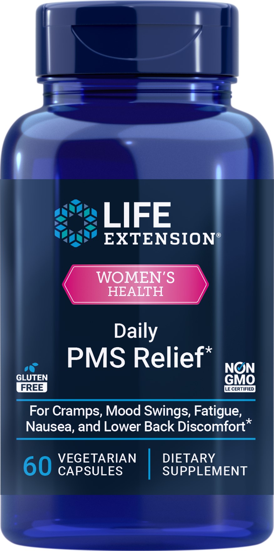 Daily PMS Relief is the newest addition to Life Extension’s women’s health line, which includes FLORASSIST® Probiotic Women’s Health, an oral probiotic for vaginal, digestive and immune health, Estrogen Balance Elite† to support women’s estrogen production pathways, Sexual Health for Her to promote libido, lubrication and sexual satisfaction, and Menopause Relief to help relieve 11 menopausal discomforts, including hot flashes, night sweats and mood changes.