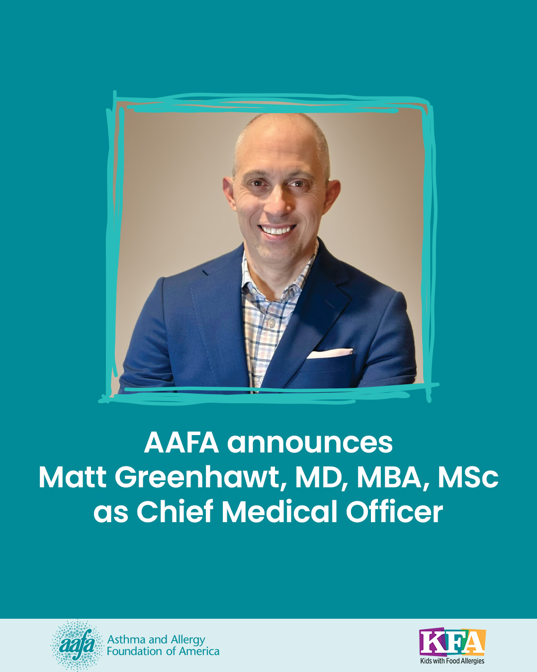 “Matt’s track record of advancing care through science and advocacy makes him a terrific addition to our team,” said AAFA Board Chair Ritesh Patel. “His evidence-based approach has helped cut through fear and misinformation, especially around food allergies. He will elevate every part of AAFA’s mission.”